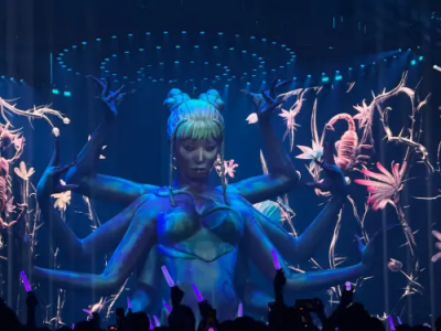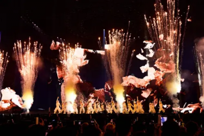 整場演出亮點多,像是Jolin駕馭象徵愛與自由的「彩翼飛馬」登場,率領36名舞者化身的夢幻生物繞場巡禮。隨後在演唱〈腦公〉時,她甜蜜喚醒主舞台上的「綠丘巨人」跟著舞動,讓大巨蛋變身繽紛夢境。而整場演出的最高潮,莫過於壓軸橋段。伴隨著磅礡的〈布蘭詩歌〉,主舞台中央一座七層樓高、八臂高展的「愉悅之女」雕像震撼現身。這座造價高達40萬美金(約1250萬台幣)的精神圖騰破繭而出,Jolin隨即轉動刻滿七宗罪意象的「命運之輪」,高喊「Call me mommy」,宣告愉悅基因覺醒,並接連演唱〈PLEASURE〉、〈舞孃〉、〈PLAY我呸〉,雷射光束與電音節拍將大巨蛋瞬間變成巨型狂歡夜店,帶領4萬名觀眾跳進愉悅宇宙迎接新年。
