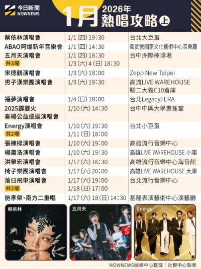 1月全台演唱會一覽