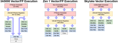 與英特爾和 AMD 的比較只是故事的一個方面。較早的 GS464E 核心有 64 位 FP 單元,使其回到了 x87 和 MMX 時代。龍芯當然要在他們得到的基礎上工作。當 ICT 管理狗剩(Godson)的开發時,他們創造了 GS464V,這是 GS464 的一個變種,具有強大的向量單元,用於超級計算機。我懷疑 GS464V 構成了 LA464 的矢量實現的基礎。根據 IEEE 的一篇論文,GS464V “在內核中集成了兩個256位的矢量單元”,並且“矢量ALU模塊被使用了兩次”。