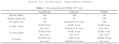 來自 “中國的 CPU 和 DSP 設計介紹”。所有列出的 GS464E“關鍵參數”在 LA464 上都是相同的。