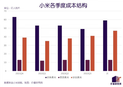 數據顯示,四季度小米銷售費用爲59億元,同比上漲8.9%,略高於市場預期的7.7%。管理和研發費用則分別爲12億元和47億元,同比分別增長2%和7.1%。需要注意的是,考慮到智能電動車等創新業務仍在攻堅階段且團隊規模不斷擴大,小米研發、管理成本可能會進一步上漲。
