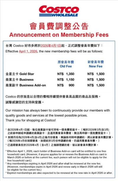 官方規定中藏有「抗漲小確幸」。若原會員卡到期月份為 2026 年 4 月,只要提前在 3 月份完成續約,仍可適用舊制 1350 元的價格,現省 150 元。但若過期至 4 月後才辦理,則必須依新標準收費。