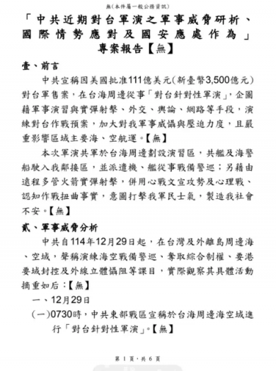 標題:國防部專案報告被下令寫【無】 徐巧芯:實在太白癡