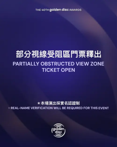 若是買不到票的粉絲也不用灰心,第40屆金唱片頒獎典禮將於2026年1月10日(六)16:00起,全台獨家由TVBS歡樂台轉播及Disney+線上直播第40屆金唱片頒獎典禮(The 40th Golden Disc Awards),讓沒有搶到票的粉絲也可以同步享受盛典。