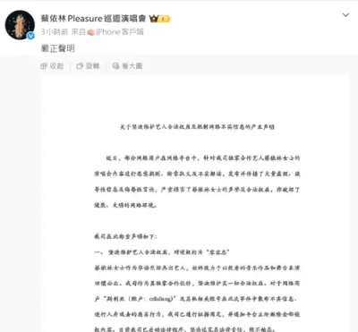 梁曉珺近年轉戰自媒體,化名「斯理亞」在微博、小紅書等平台活動,日前她將蔡依林《Pleasure》演唱會的舞台視覺符號,解讀為邪教、光明會等陰謀論象徵,話題瞬間引發熱議。蔡依林巡演團隊發出聲明,表示相關內容已對藝人名譽與權益造成實質傷害,因此決定依法追究,並要求平台全面下架侵權資訊。