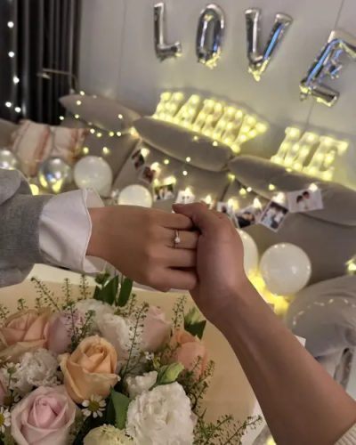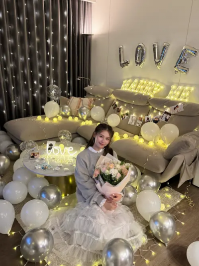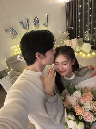 曝光的照片,可見求婚現場以白色、銀色氣球與黃色燈飾布置,吳季璇身穿白紗裙手抱花束,臉上掛著幸福笑容,正式成為管麟未婚妻,留言區瞬間湧入大量祝福,不少圈內友人如與管麟合作《飛魚高校生》的宋偉恩、黃宏軒,以及顏永烈、陳妤、塗善存、葉星辰等人都送上祝賀。