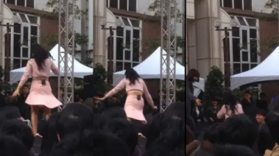 在眾人面前摔倒後,A-Lin糗到摀嘴大笑,主持人阿娟趕緊上前將她扶起,A-Lin隨後拿起麥克風問台下歌迷:「誰有拍到?可以傳給我嗎?」主持人笑翻說:「不要PO在Facebook上嗎?」A-Lin回:「不是!因為天後都會跌倒!」