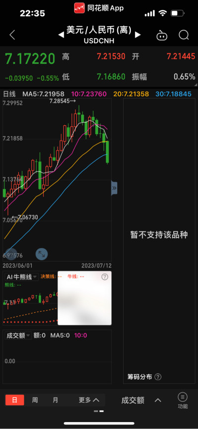 人民幣匯率在6月30日最高降至7.28545時开始反彈,而且反彈的力度不小,截至發稿,離岸人民幣匯率突破1.7200,在日內上漲400點,而我一直也在關注着港股恆生科技指數的走勢,即使前幾天恆生科技指數都出現了衝高回落,但基本以紅盤收盤。走勢以人民幣匯率極爲相似,我持有中概互聯的基金已兩年多,發現了其與人民幣匯率關系的很密切,但也會出現異常的情況,只是總體而言,從6月30日以來,港股恆生科技指數也漲近4%,所以,隨着美國CPI超預期下跌,中概互聯具備一定空間機會。