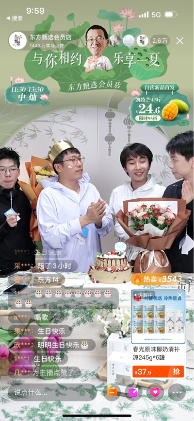 昨晚在甄選app直播間看到明明和2.6萬粉絲一起在“自建房”慶祝生日”,內心甚是欣慰。回想當初开始寫每日GMV的初衷是因爲看到這幫年輕人非常努力,希望能在這個平台上能有多一些對他們支持和鼓勵的聲音。也許某一天我就不需要再發抖音每日GMV了,因爲那時候甄選的主陣地已經轉到app,抖音已不再是基本盤的主要指標。