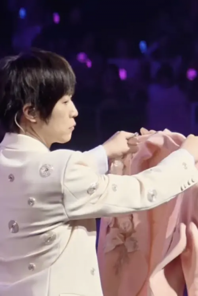 標題:阿信連續兩次摔倒!粉絲敲碗丟掉那件粉色外套 他演唱會現場丟了