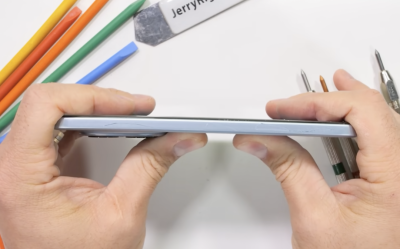 YT頻道JerryRigEverything的徒手彎折測試,手機沒有絲毫變形。(圖/翻攝YT)