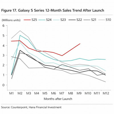 知名爆料客引用市調機構Counterpoint數據指出,最近幾個月,S25系列在全球市場的買氣明顯反彈,整體熱度回到接近上市首月的高峰水準,這是過去不曾有過的現象。