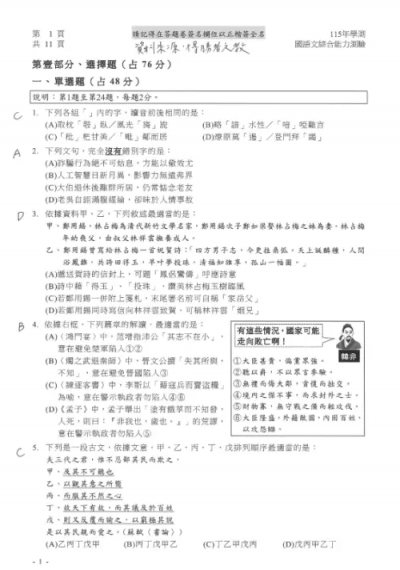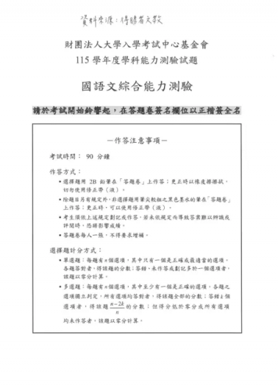 標題:學測第二天/ 國綜科參考答案出爐 全教會:整體較難分數恐下降