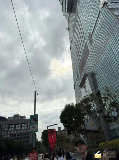 ▲Alex Honnold試爬台北101,周邊有許多工作人員維安。(圖/讀者提供) Alex Honnold開爬台北101!路人看傻驚呼