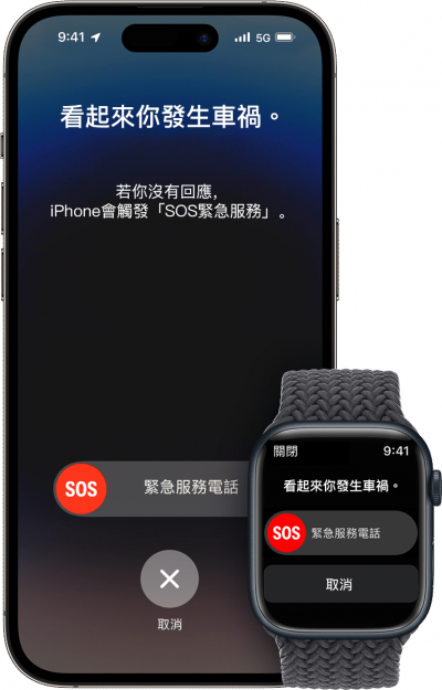 當偵測到嚴重車禍時,iPhone會先發出警示聲,並顯示畫面提示10秒,如果使用者無任何回應,手機會在倒數30秒後自動撥打緊急服務電話。