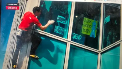 霍諾德爬到台北101第77樓!Google員工貼窗舉牌打氣
