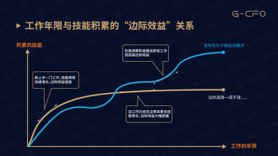 財務經常講“邊際效益”,人要是老待在同一崗位,每一份付出相應的收獲,最後都會邊際遞減,最後讓人走在逼仄的職業旅途上。
