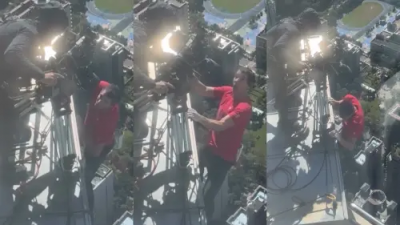 一名在台北101上班的網友,25日側錄霍諾德攀爬101的過程,曝光的小花絮,當霍諾德爬到75樓處的建築物外緣時,只見他擡頭正對著攝影機,下一秒做出張開嘴、瞪大眼睛的面部表情,假裝一副驚恐的模樣,讓人會心一笑。