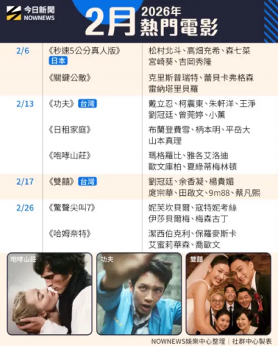 標題:2026 2月電影懶人包》九把刀3億炫《功夫》!劉冠廷《雙囍》超忙