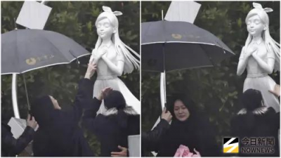 大S雕像揭幕!王柏傑、謝欣穎分手後同框 共撐雨傘、面容哀戚