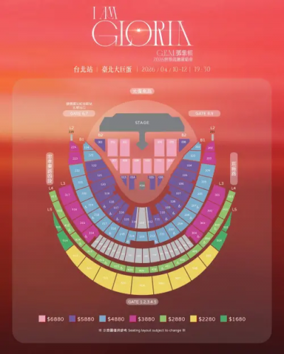 2026鄧紫棋大巨蛋演唱會座位圖、7種票價