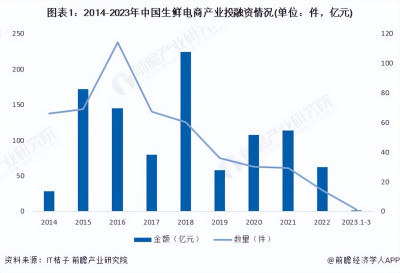 截至2023年3月28日,國內生鮮電商產業僅發生1例投融資事件,且投融資金額只有 0.3 億元。
