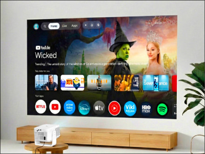 OVO全新Warpple LA8雲台投影機內建Google TV,使用者可透過智慧系統觀看串流影音平台。