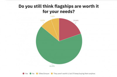 外媒進行一項「旗艦手機值得買嗎」網路調查,共有超過1.8名網友參與投票,結果有高達66.5%認為,自己不需要旗艦手機;但仍有約2成表示,旗艦手機依然具入手價值。另有約6%坦言,雖然覺得旗艦機性價比不高,但基於個人需求還會是購買。