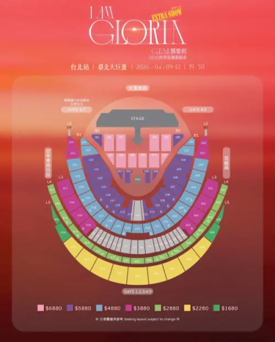 - 票價資訊: NT$ 6,880 / 5,880 / 4,880 / 3,880 / 2,880 / 2,280 / 1,680