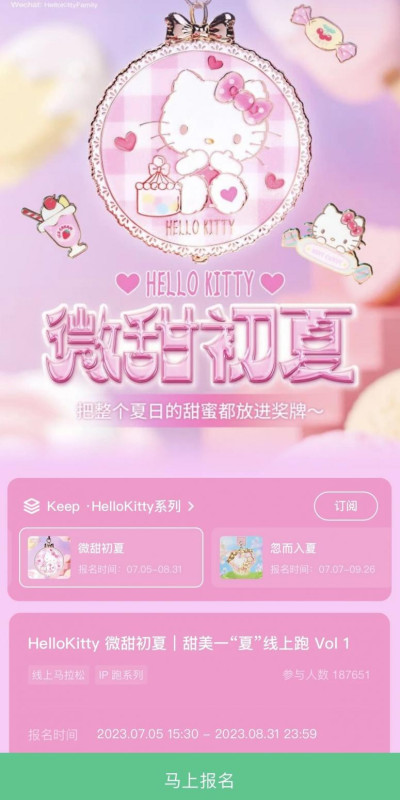 嘗到了甜頭,Keep开始加大與各種IP的合作力度,接連推出多個限量版聯名獎牌,如美樂蒂、Hello Kitty、櫻桃小丸子、三眼仔等,並積極運營賽事。初衷是“拉新促活”,吸引非健身圈的用戶進入Keep的池子,再通過健身課程沉澱下來。