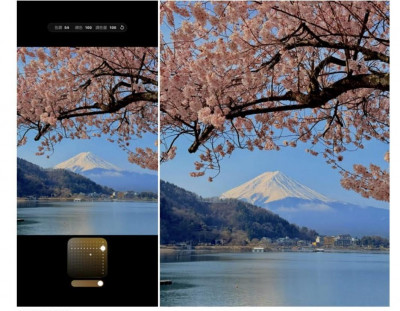 在春季拍攝櫻花的時候,推薦使用「金色」攝影風格,一樣可將調色盤往右上調整,提升明亮度與鮮艷度,讓花朵色彩更加飽滿。(圖/紀映光 @chillinlight )