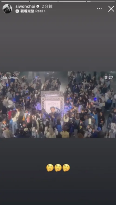 有趣的是,高雄巨蛋的繞四面看板祈福行動,連財神本人都親自關注!崔始源看到粉絲繞柱的影片後,立刻轉發到社群限時動態,但因不熟悉台灣的民俗與祈福文化,他一臉困惑地打上三個問號表情,甚至直接詢問粉絲「他們在做什麼?」對此粉絲則留言解釋是在求好運,也有人笑說「在求好運!因為你是好運的代表!」、「因為你是幸運神!」。