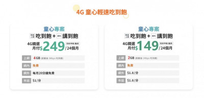 推薦方案:4G 149童心喫到飽