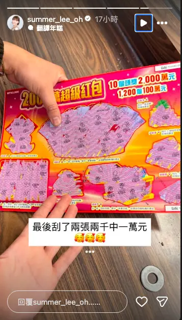 我是廣告 請繼續往下閱讀 李懿刮刮樂中10,000元 超狂戰績眾人羨慕