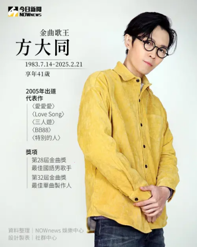 標題:今日歷史/方大同過世1周年!母淚接他遺志 工作室將推特別專輯