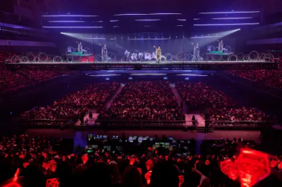 為了帶給歌迷不同於去年的嶄新體驗,二姐與團隊經過多次會議反覆討論現場動線與視覺設計,讓誠意與規格雙雙升級。驚險刺激的高空空橋,是為了替高樓層區域的粉絲謀福利,同時,她還特別站上象徵音樂流動的音符造型推台繞場,近距離與特區及二樓觀眾互動。