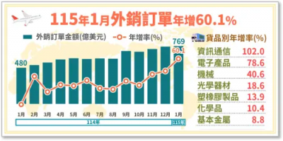 標題:1月首度站上700億美元大關!1月外銷訂單創歷史新高