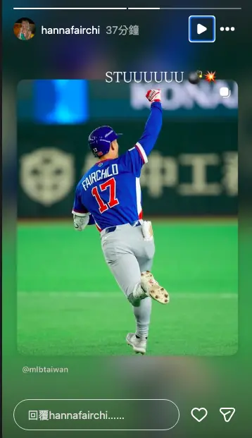 而4個月前才剛結婚的「費仔」,辣妻漢娜(Hanna Fairchild)這幾天也現身東京巨蛋,為他加油打氣,PO出球場照寫道「game 4」,另外也轉發「費仔」轟出全壘打的新聞,對老公的好表現感到十分驕傲。