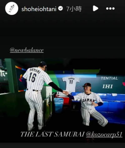 除此之外,作為隊長的大谷也注意到一直沒機會上場表現的板凳球員小園海鬥,他特地在限時動態給小園海鬥一個版面,貼出兩人在後台擊拳的照片,並配文「THE LAST SAMURAI(最後的武士)」,似乎是在鼓勵小園海鬥不要氣餒,讓球迷感到相當暖心,更被大谷的細膩心思觸動。