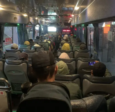 ▲天還沒全亮,第一班公車上已是滿滿的長輩,自認早起的李驥坐到最後一排。(圖/翻攝李驥臉書,2026.03.09)