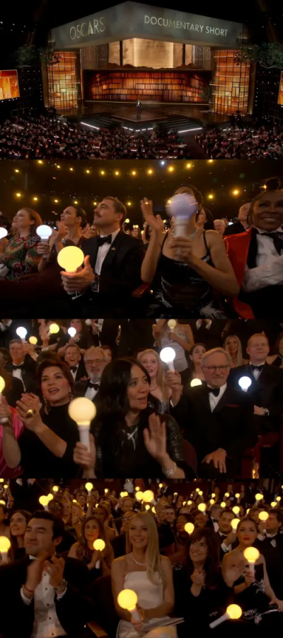 當《獵魔女團》HUNTR/X的「魯米」EJAE、「米拉」AUDREY NUNA、「佐依」Rei Ami合體站上舞台演唱〈Golden〉時,奧斯卡頒獎典禮現場氣氛立刻嗨炸,因為原本台下觀眾手上完全沒有任何應援物,但音樂前奏一響起,整個好萊塢杜比劇院的觀眾突然亮起滿滿黃金燈海,隨著節奏左右搖擺,鏡頭掃到艾瑪史東時,她笑著揮手燈、李奧納多跟著節奏晃動,「小辣椒」葛妮絲派特洛也拿著金棒擺動,被形容是「奧斯卡史上最難得的名場面」。