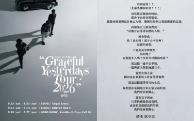 back number稍早用中、英、日、韓等4國語言,宣布開啟海外巡迴,台灣場次是8月22日、8月23日台北小巨蛋,接著是9月12日、13日在首爾KINTEX HALL 9,再來是9月26日、27日香港場,地點為亞洲國際博覽館。