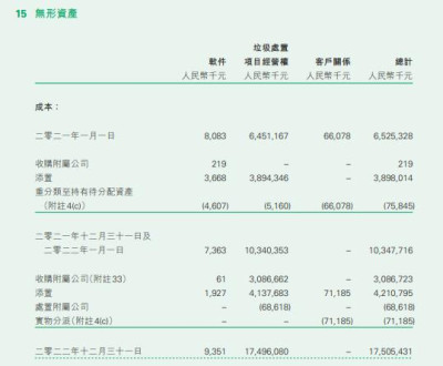 2)從無形資產構成來看:有三類:專利和軟件類;垃圾處置經營權;客戶關系;從量上來看,客戶關系可以忽略不計,最重要的是垃圾處置經營權,略看估計在99%的比重。