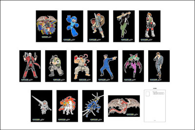 消費滿額贈送的明信片圖案樣式,包括《洛克人》、《快打旋風》、《惡靈古堡》等系列知名角色。