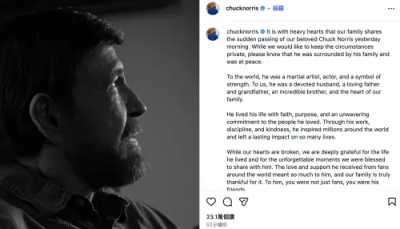 前年84歲的羅禮士還在社群網站上傳一段做槓鈴訓練的影片,只見鬍子和頭髮都白了的他,依舊面不改色的舉重,重量竟然超過兩百公斤,就連兒子問他,他都只輕描淡寫稱在暖身,網友看到都不敢相信他已經84歲,直呼厲害。不過歐美媒體報導,他在週四時已經送醫治療,卻仍回天乏術,家人表示他去世時大家都在他身邊,他走得安寧、平靜,也希望外界能讓他們保有隱私。