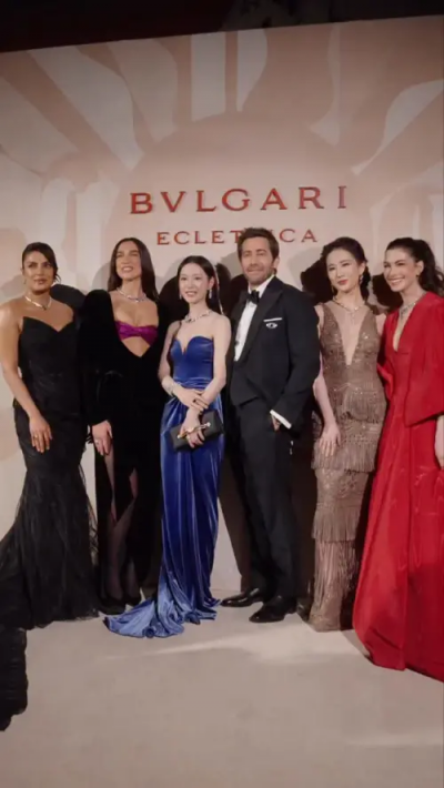 本次寶格麗活動邀請多位品牌代言人與國際巨星共襄盛舉,包括安海瑟薇、傑克葛倫霍、劉亦菲,以及歌手杜娃黎波與Priyanka Chopra Jonas等人皆盛裝出席,金智媛則以抹胸設計的深藍禮服現身,整體造型展現高貴與典雅氛圍。