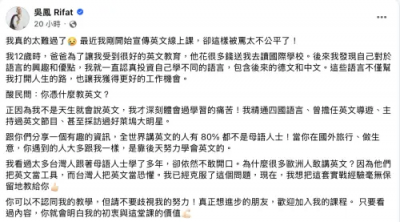 我是廣告 請繼續往下閱讀 吳鳳遭酸沒資格教英文!他無奈回應:我精通四國語言