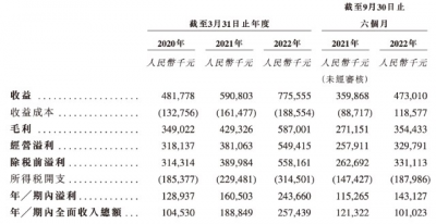 毛利率較高從營收上來看,據上市文件顯示,2019年—2021年財政年度(次年3月31日爲上一年財政年度的期末),該公司營業收入分別爲4.82億元、5.91億元、7.76億元,淨利潤分別爲1.29億元、1.61億元、2.44億元。2022年4月1日—9月30日,該公司營業收入和淨利潤分別爲4.73億元、1.43億元。