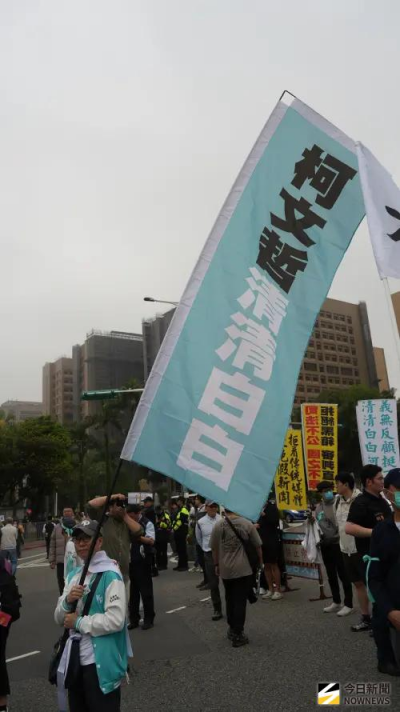 從新北來的楊先生手持6公尺長「柯文哲清清白白」的旗子,他表示,對於柯文哲在審判上從一開始的審理、問訊到最後審判過程,都受到不公平對待是台灣政治人物之最。從法院開庭可以看到檢方捏造筆錄、威脅證人,都呈現在法庭上,不知為何法官都忽略這個事實,他認爲台灣司法淪喪,所以要站出來要替柯文哲發聲。