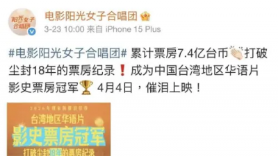 片商在微博上宣傳時寫道,「電影《陽光女子合唱團》累計票房7.4億台幣,打破塵封18年的票房紀錄,成為中國台灣地區華語片影史票房冠軍」,此舉引發諸多台灣人不滿,因《陽光女子合唱團》拍攝時獲得文化部、台北市與桃園市的影視補助,合計超過1800萬元,如今自稱「中國台灣地區華語片」,導致出現抵制輿論。文化部對此表示,已請劇組儘速了解說明。